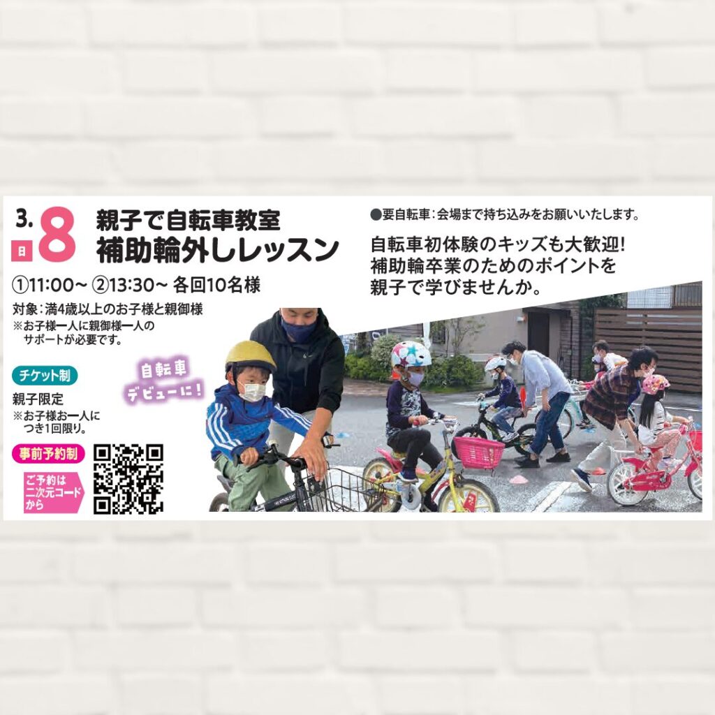 【2026年3月8日(日)】親子で自転車教室 補助輪外しレッスン